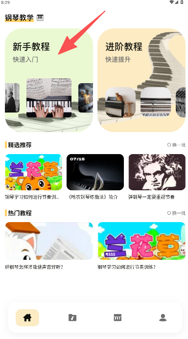 1、在软件首页“新手教程”板块选择课程。