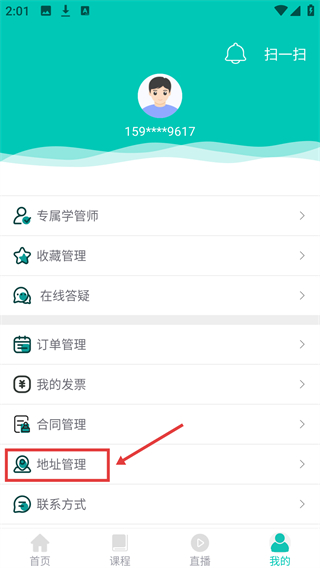 2、点击【我的】进入对应页面,找到【地址管理】选项。