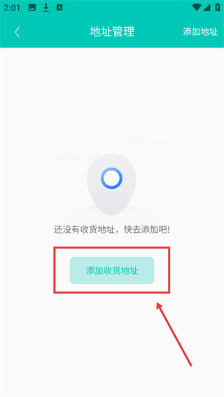 3、进入【地址管理】页面,看到提示可点击【添加收货地址】按钮来新增收货地址。