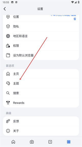 3、在设置界面首选项分类下,找到主题选项并点击进入对应页面。