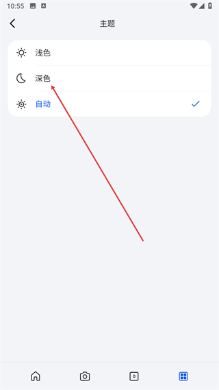 4、在主题页面选择深色选项,点击后即可切换为深色模式显示界面。