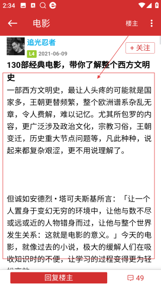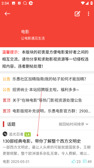 3、在电影版块页【选择目标话题内容】,进入该话题的详情页面。
