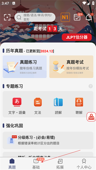 1、进入首页后,点击底部【基础】,可进入基础训练界面。