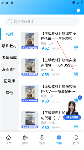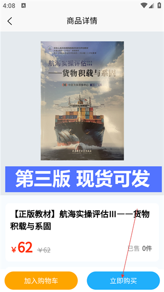 2、在书屋页面,选择目标商品(如《航海实操评估Ⅲ—货物积载与系固》),进入商品详情页。