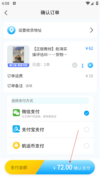 4、在确认订单页面,设置收货地址,选择支付方式后,点击【确认支付】完成商品购买流程。