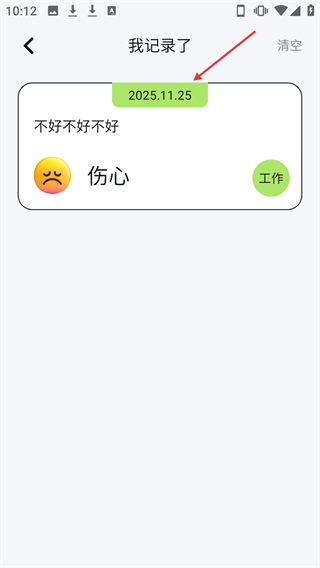 4、进入【我记录了】界面,可查看对应日期下的心情记录,包含所选情绪标签与分类标签信息。