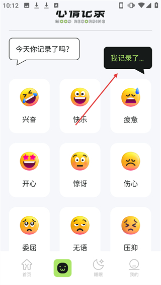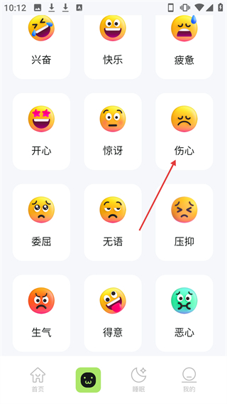 1、在情绪选择界面,点击【伤心】对应的表情,即可选中该情绪作为记录的情绪标签。