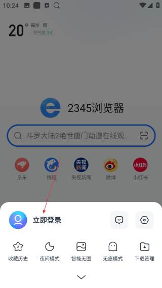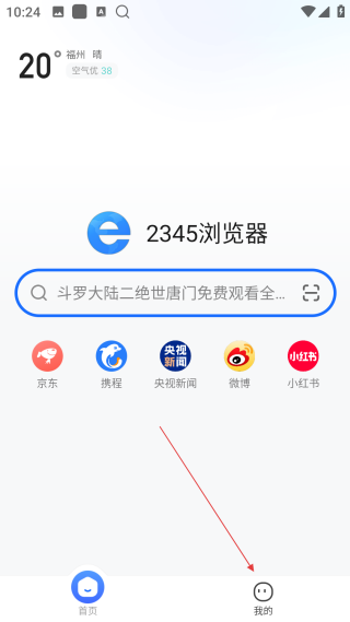 1、在2345浏览器首页,点击底部【我的】选项,进入个人中心页面。