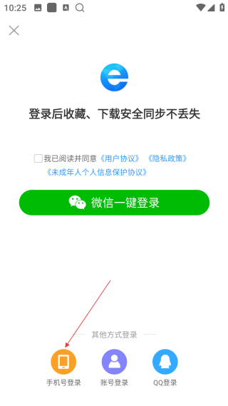3、在登录页面,选择【手机号登录】,进入对应的手机号登录界面。