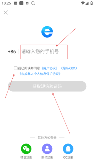 4、填写【信息勾选协议】后,点击【获取短信验证码】即可完成登录操作。