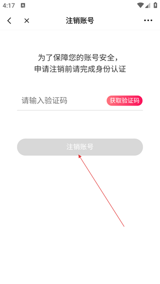 4、在注销账号页面,先点击【获取验证码】完成身份验证,输入验证码后即可点击【注销账号】完成操作。