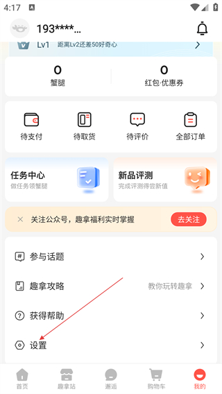 2、在个人中心页面,找到【设置】选项并点击,进入设置界面。