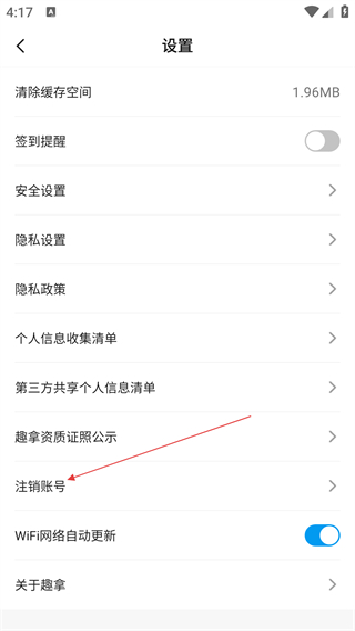 3、在设置页面,选择【注销账号】选项,进入账号注销的身份验证页面。