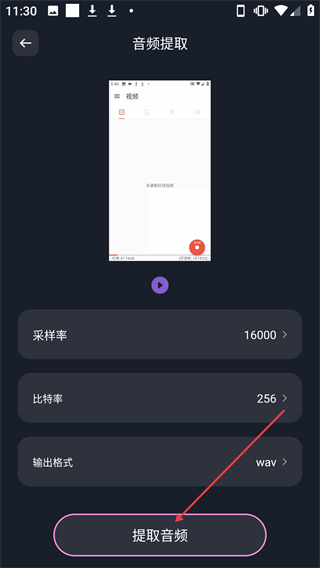 4、在【音频提取】页面确认参数后,点击【提取音频】按钮。