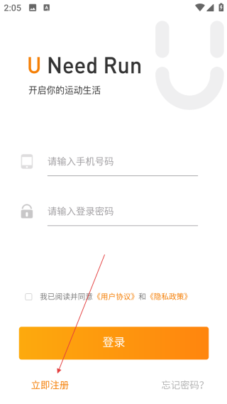 1、在登录页面,点击【立即注册】选项,进入应用的注册信息填写页面。