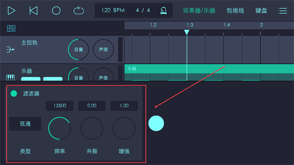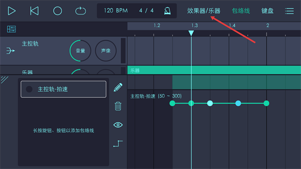 2、切换到【效果器/乐器】功能区后,点击对应触发按钮。
