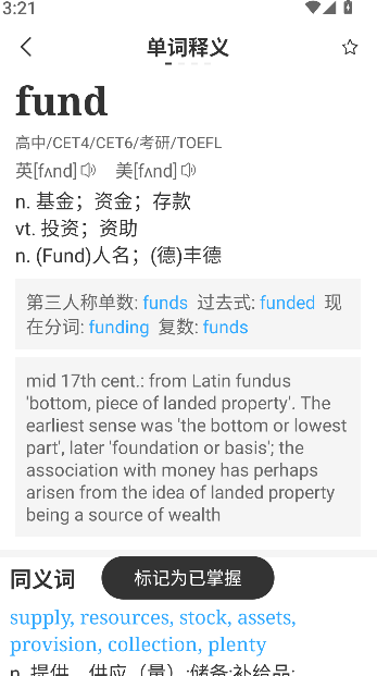 2、在学习界面中查看单词释义、读音与例句内容,便于理解词汇用法。