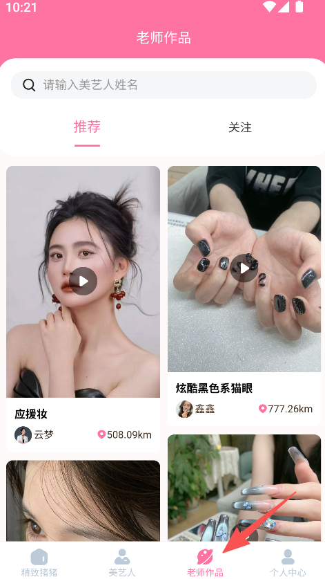 3、老师作品板块直观展示服务效果,通过妆造、美甲等作品实例,让美艺人的专业水平更易感知。