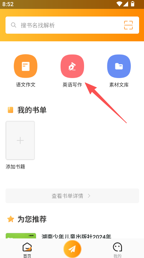 1、聚焦作文辅助领域,设语文作文、素材文库板块,覆盖不同类型的作文资源,同时支持搜书名找解析,适配作文学习的多元需求。