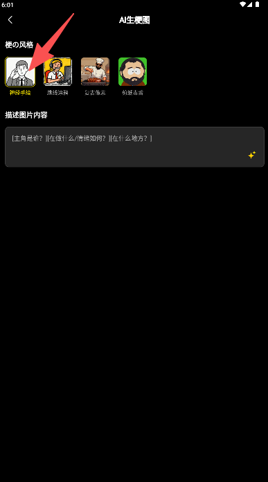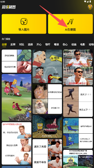 1、在首页选择"AI生梗图"功能点击进入创作界面。