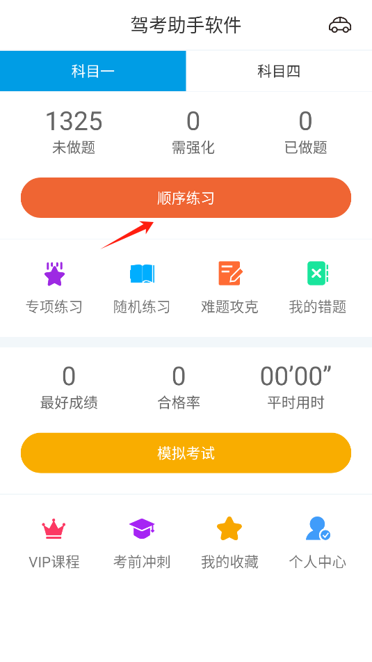3、完成答题模式后,就可以尝试进入考试模式的练习拉。