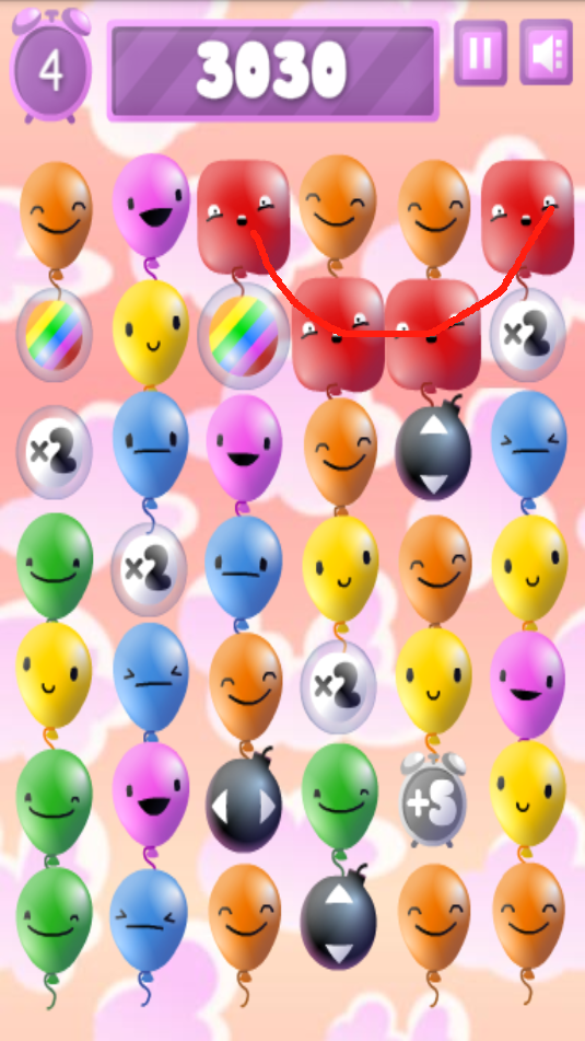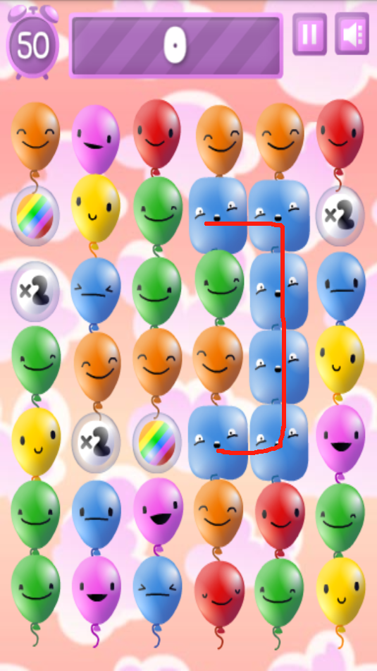 3、相隔一个的气球也可以连接到,消除的气球越多分数越高。