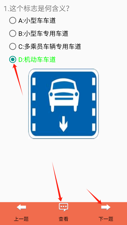 2、可看题猜答案,再点击下方的查看显示答案,再点击下一题。