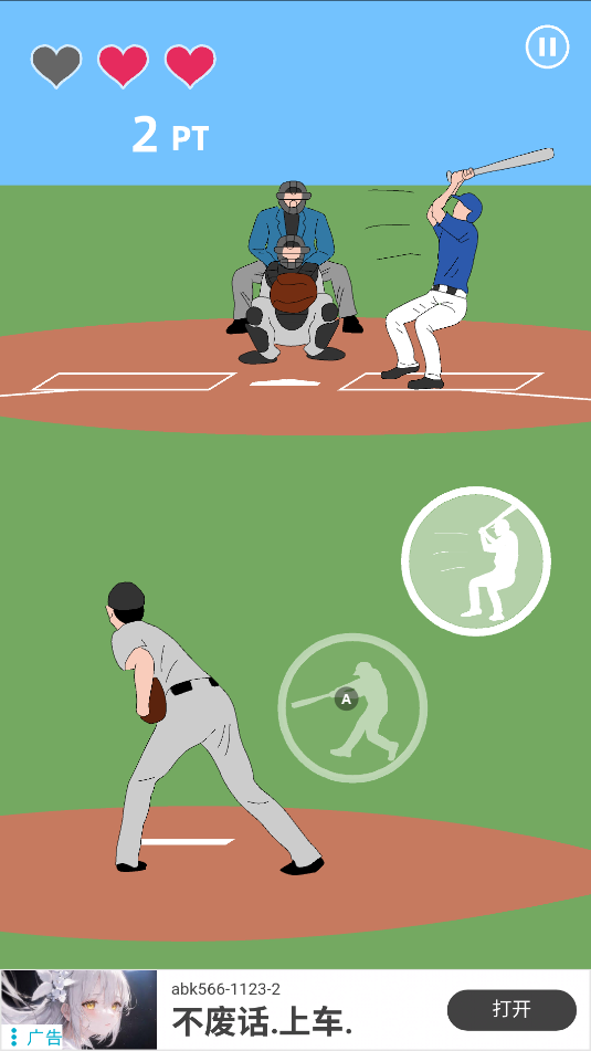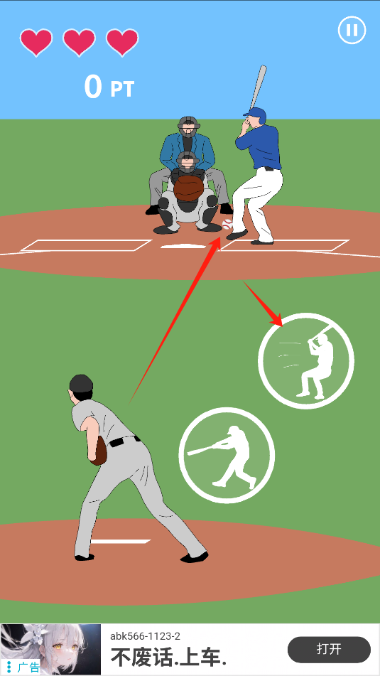 2、有三颗心,代表可以失误三次,在投手丢出去的那一秒,需做出反应,是躲避球还是击打球。