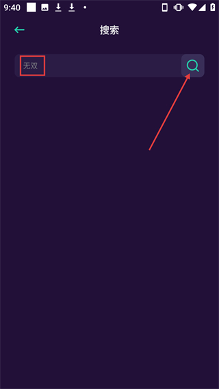 2、在搜索页面的输入框中填写“无双”后,点击搜索按钮,即可触发搜索操作。