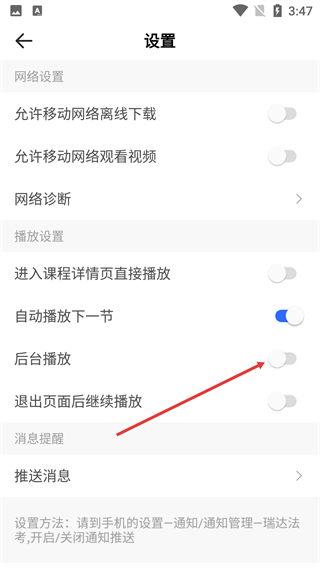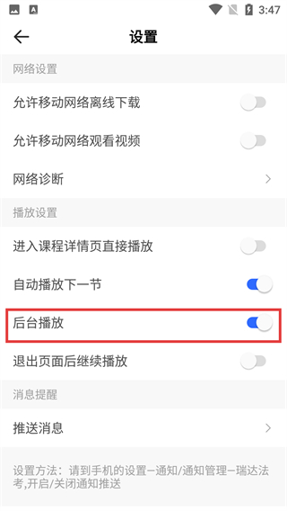 4、开启【后台播放】后,课程视频可在后台持续播放,无需停留在课程页面,方便同时进行其他操作。