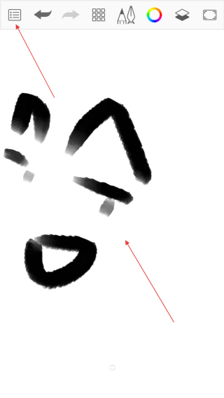 3、使用选中的画笔在画布上【进行绘制】,完成创作后,点击【菜单】打开菜单页面。