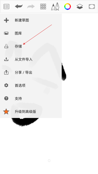 4、在菜单页面,点击【存储】选项,即可将当前创作的内容进行保存。