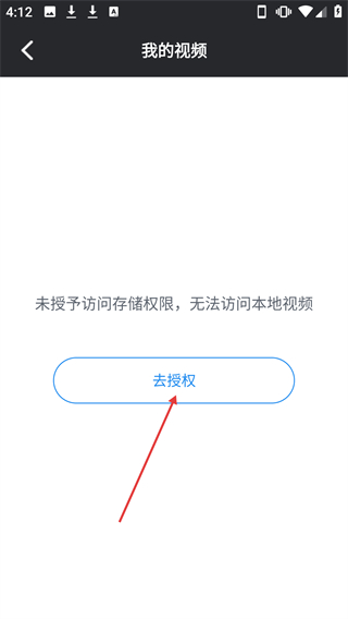 2、在我的视频页面点击【去授权】按钮,可获取存储权限以访问本地视频。