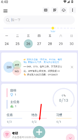 1、在首页点击“+”号按钮,进入添加目标界面,准备创建新的任务。