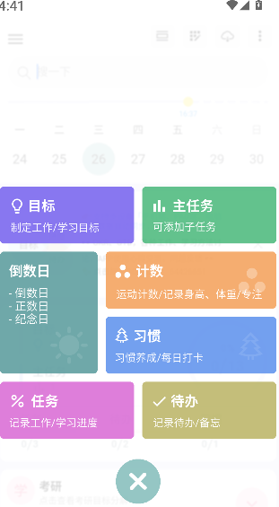 1、支持创建任务、设定时间、添加提醒,实现日常任务记录。