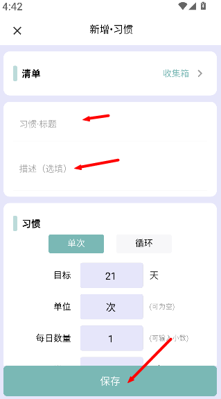 3、输入任务标题与详细描述,确认信息无误后点击保存,即可完成目标添加。