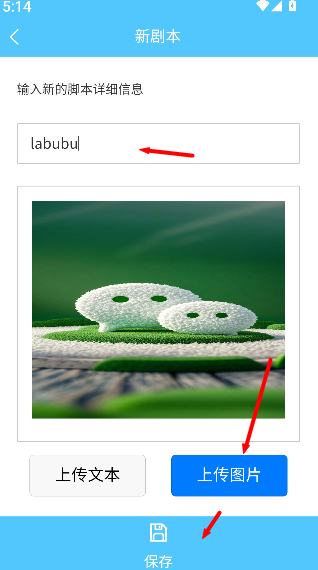 2、在界面中输入剧本标题,并上传相关图片作为辅助展示素材。