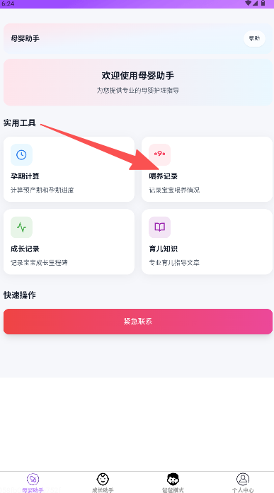 1、在首页“实用工具”区点击“喂养记录”功能进入管理页面。