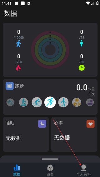 1、在数据页,点击底部【个人资料】选项,进入个人资料的功能操作界面。