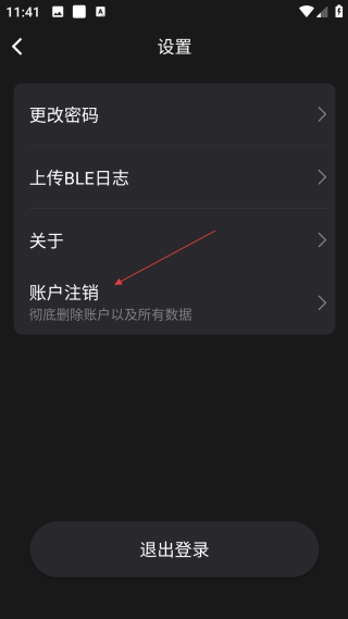 3、在设置页,点击【账户注销】选项,进入账户注销的确认操作界面。
