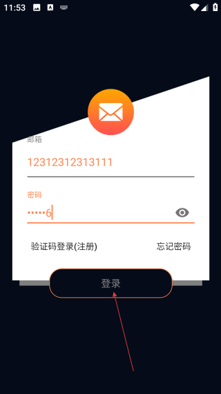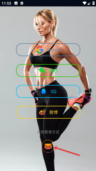 2、在登录方式页,点击【邮箱图标】,进入邮箱登录的信息填写界面。