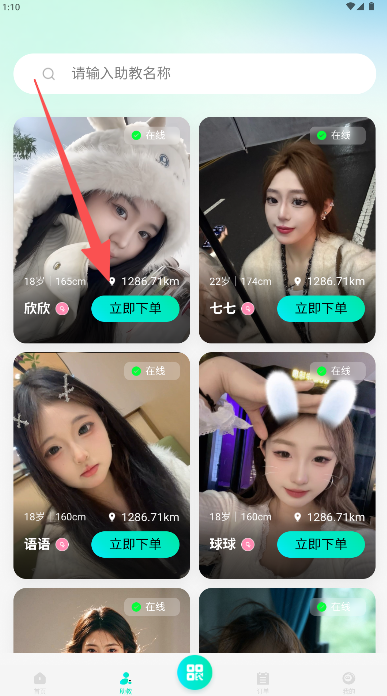 3、服务信息展示维度全面,包含助教年龄、身高、距离等关键信息辅助用户选择决策。