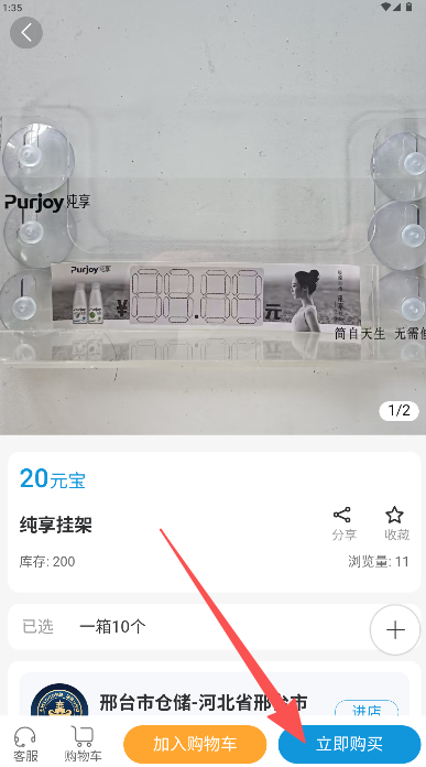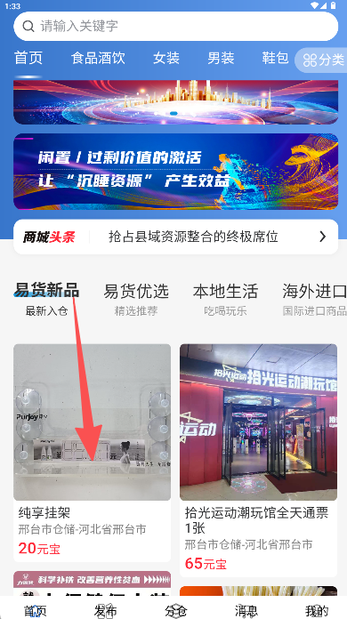 1、在首页点击“易货新品”查看商品如“纯享挂架”。