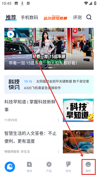 1、在科技资讯首页,点击底部的【我的】选项,就能进入个人中心页面查看各类功能啦。
