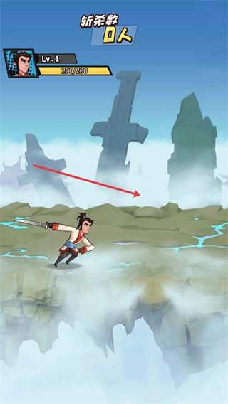 1、进入关卡后,角色处于Lv.1状态,需在云雾场景中移动探索,目标是击败敌方角色积累斩杀数,提升等级与属性。