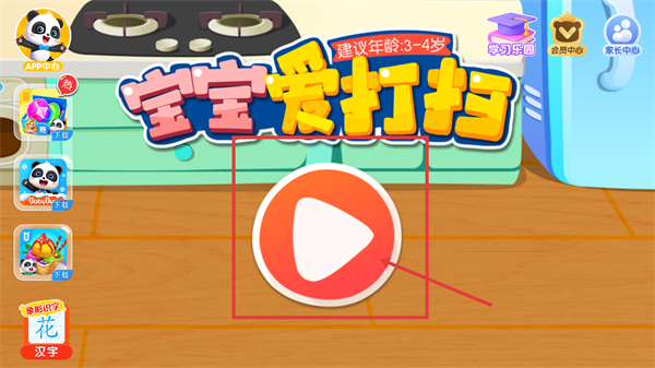 1、点击【播放按钮】进入【宝宝爱打扫】游戏,开启清洁整理类的互动玩法。
