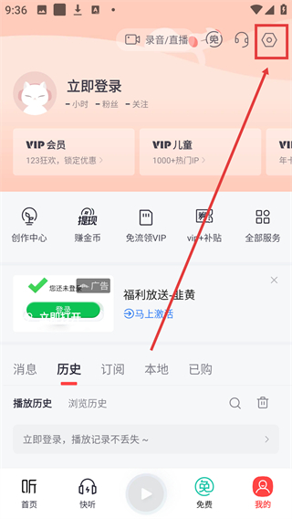 2、进入个人中心后,点击页面右上角的【设置】图标,可进入设置页面,查看各类设置选项。