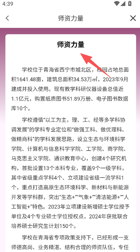 3、提供学校信息查阅功能,点击师资力量选项,可了解学校的教学资源与师资情况。