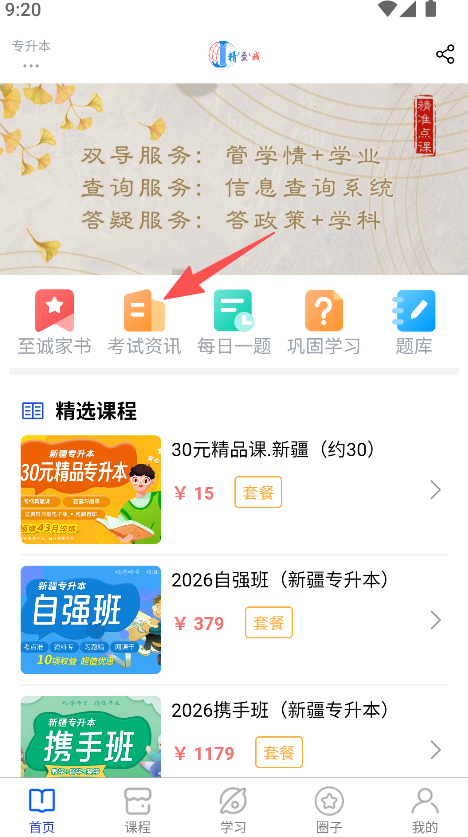 1、备考服务维度全面,从资讯查询到课程学习再到练习,一站式整合专升本备考所需资源。
