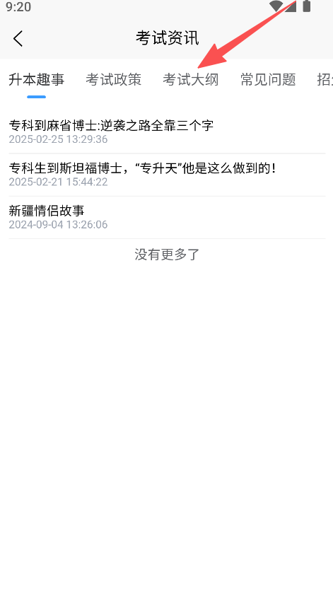 2、考试资讯分类细致,含升本趣事、考试政策、考试大纲等板块,助力获取全面的考试相关信息。